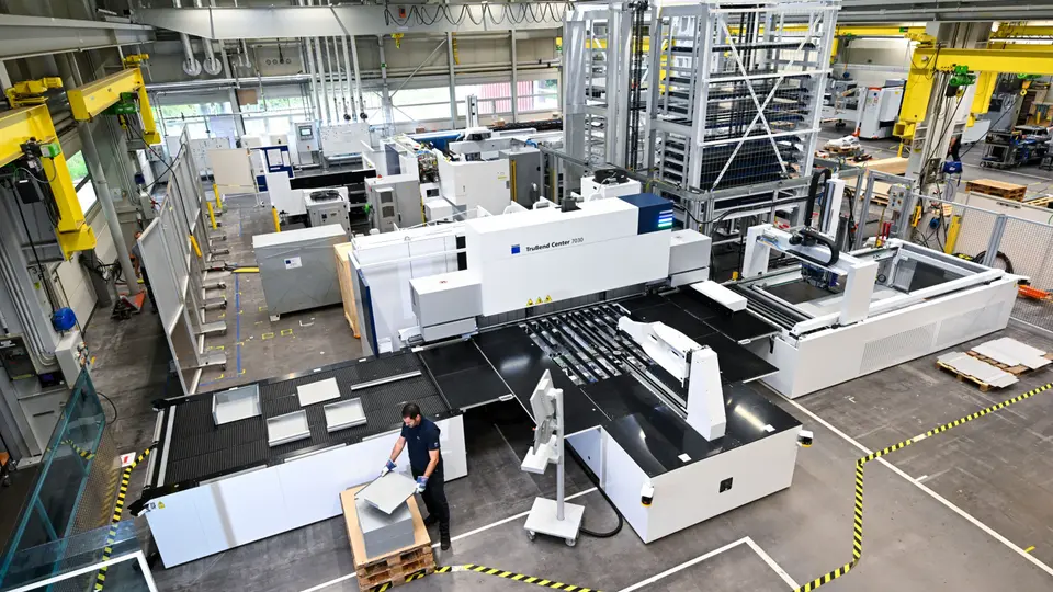 通快机床首席执行官Stephan Mayer指出:“在钣金制造中实现裁切、冲孔与折弯工序的直接联线,并支持小批量至单件流生产,是提升效能的关键突破。这不仅节省场地成本与内部物流开销,更有效降低冗余零件库存。通过集成全柔性软件系统,新零件可在极短时间内完成编程。”该互联系统既能高效完成单件定制,也能经济应对大批量生产。设备间解耦设计既保障了整个系统的稳定运行,又使每台独立设备效能最大化。此外,整套解决方案仅需一名操作人员即可操控,显著降低单件生产成本。