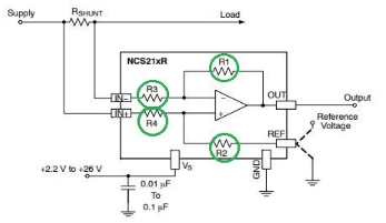 一大关键难题是上桥配置中的电流测量,其中的分流电阻并非以地为参考点。这就要求放大器需具备处理大共模输入电压的能力:部分型号的共模电压上限可达 40V,而像 NCS7031 或 NCV7031(汽车级)和 NCS7041 或 NCV7041(汽车级)等型号,共模电压上限甚至可达到 80V。这种能力对上桥和下桥电流检测意义重大:既为设计提供灵活性,又能在上桥应用中实现负载短路检测。