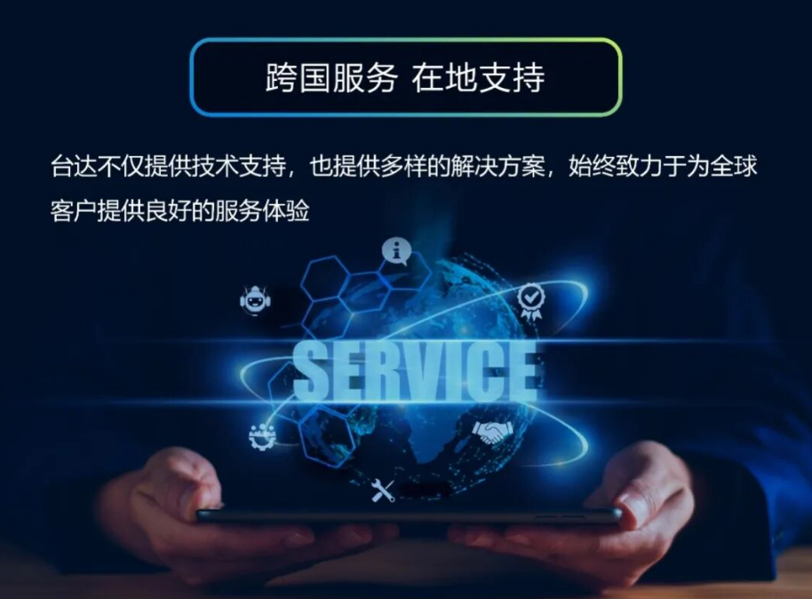 设备故障可能导致海外仓停摆,损失惨重。依托台达在全球的94个据点、近160家授权售后服务伙伴,163家备品备件中心,无论是设备调试、故障排查还是备件更换,均能实现24小时响应需求、48小时给出解决方案、72小时完成80%的需求处理,为客户海外业务高效运转提供保障。