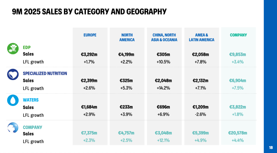 尽管中国市场的奶粉和医学营养品延续了高增长,但Esser今天提醒称,需要对此保持谨慎心态,不要将这股势头简单外推到后续所有季度。“但我们也有充分理由相信,在接下来几个季度,中国业务将创造显著且可持续的增长。”他说。