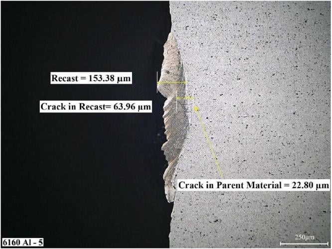 此前制约该技术在航空航天领域大规模应用的主要障碍包括:对材料变形与残余应力的顾虑、表面光洁度要求、以及重铸层、热影响区、氧化物、熔融球体、飞溅和裂纹等加工缺陷的存在。如下图所示案例可见典型加工缺陷——激光束在局部区域过度加热导致形成较厚重铸层并伴随裂纹。