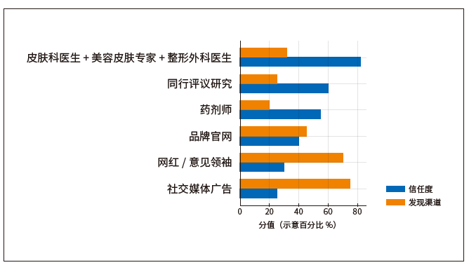 多项行业调查显示,消费者在社交平台上发现产品,但真正信任的是临床医生和科学证据。和皮肤科学专家、皮肤科医生、整形外科医生合作开发产品,针对外部环境暴露因素(暴露组驱动因素,如 UV、污染、生活方式)的品牌正在获取市场份额。实际操作中,科学可信度才能真正促成交易。消费者懂得越多,产品退货率越低,这一点在证明功效的品牌上表现明显。这套新的尽职调查标准直接影响销售,奖励那些针对皮肤老化外部环境暴露因素的品牌(图 2)。