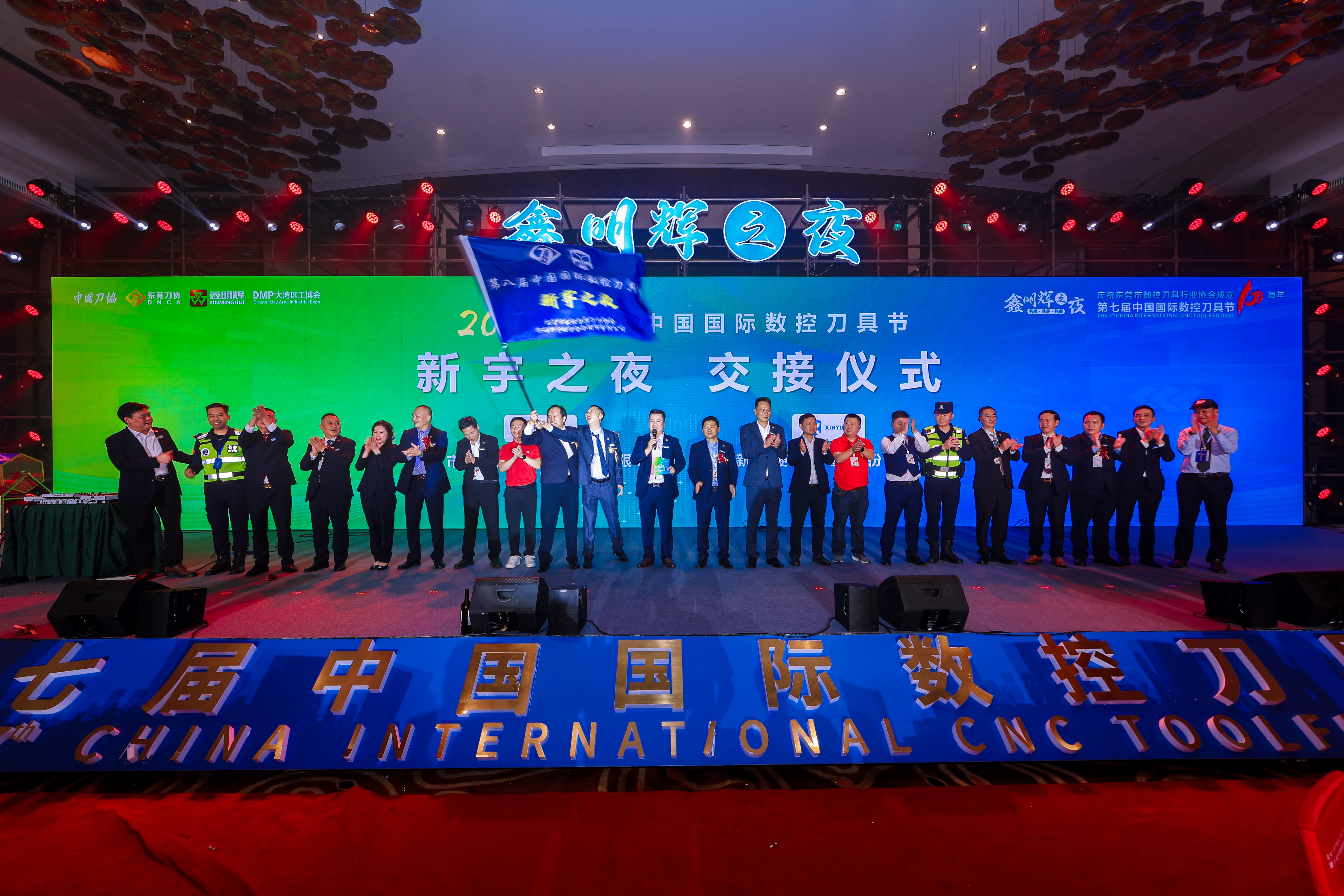 高潮过后,晚宴迎来富有传承意义的重要时刻——2026年第八届中国国际数控刀具节“新宇之夜”交接仪式拉开帷幕。在全场嘉宾的见证下,本届“鑫明辉之夜”冠名商王辉与下一届刀具节“新宇之夜”冠名方代表济南新宇硬质合金有限公司董事长孟庆林郑重交接象征行业使命与传承的信物,灯光聚焦之处,不仅是责任的传递,更承载着全国刀具人对下一届盛会的期待与展望。随着交接仪式的圆满完成,“鑫明辉之夜”千人晚宴也正式落下帷幕,为第七届中国国际数控刀具节画上了兼具温情与未来感的圆满句号。
