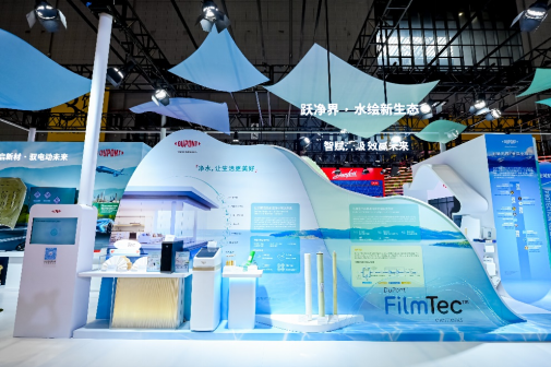 在工业水处理领域,展出的杜邦TM FilmTecTM FortilifeTM NF1000 系列纳滤膜元件,重点应用于工业废水零排放及近零排放、垃圾渗滤液等领域,帮助工业企业客户提高废水处理系统的稳定性、降低运行成本和实现废盐的资源化利用,推动工业绿色低碳可持续发展。