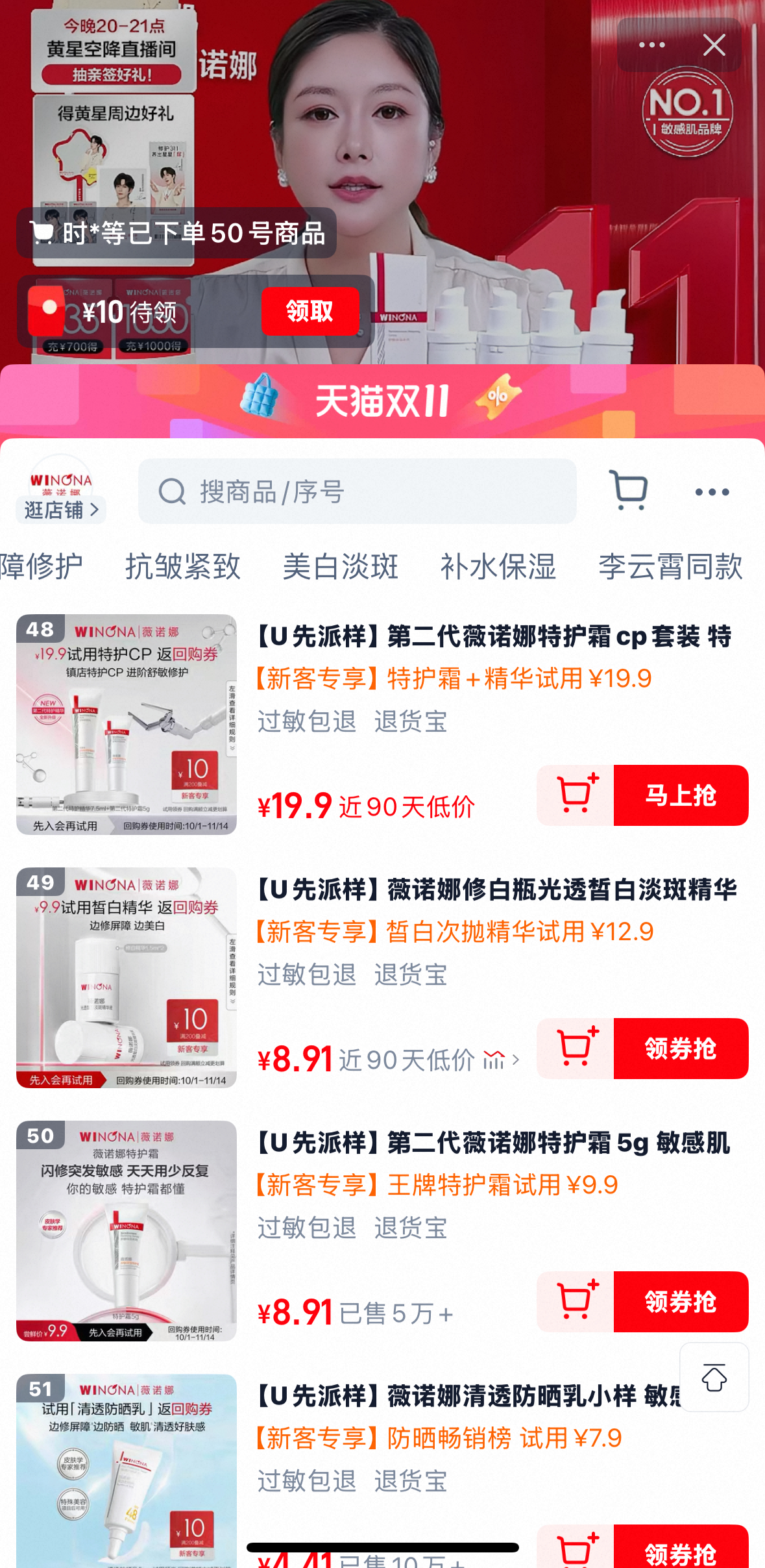 天猫/直播端仍是样品和中样快速放量的关键渠道。李佳琦直播间公开的双11首小时战报显示:直播间开售首小时加购 GMV 同比保持增长,美妆等细分品类增长显著,部分品类加购增长接近 80%。多款“热门单品”上线即售罄,花知晓、珀莱雅、薇诺娜、自然堂等国货品牌在直播间表现抢眼。直播带来的“加购→秒售→社交口碑”闭环,极大提升了中样的转化效率。