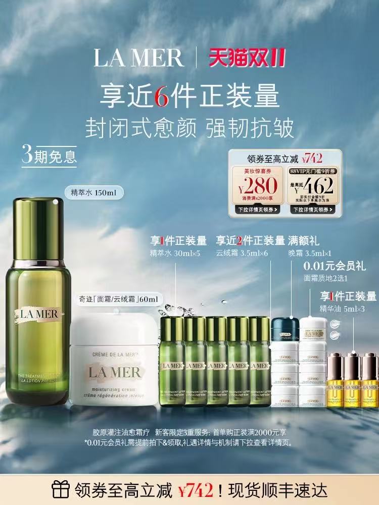 而国际大牌如海蓝之谜、科颜氏、兰蔻等,传统上更倾向于将小样作为正装产品的赠品。但近年来,它们也纷纷在官方旗舰店上线“旅行装”、“中样套装”。双十一期间,这些品牌也尝试通过“满额自选小样/赠礼”来降低试用门槛,让消费者可用低成本验证产品是否“适合自己”,再决定是否购买正装。