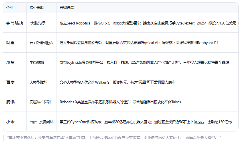 三、大厂竞逐:构建“算法-本体-生态”三位一体的具身智能版图