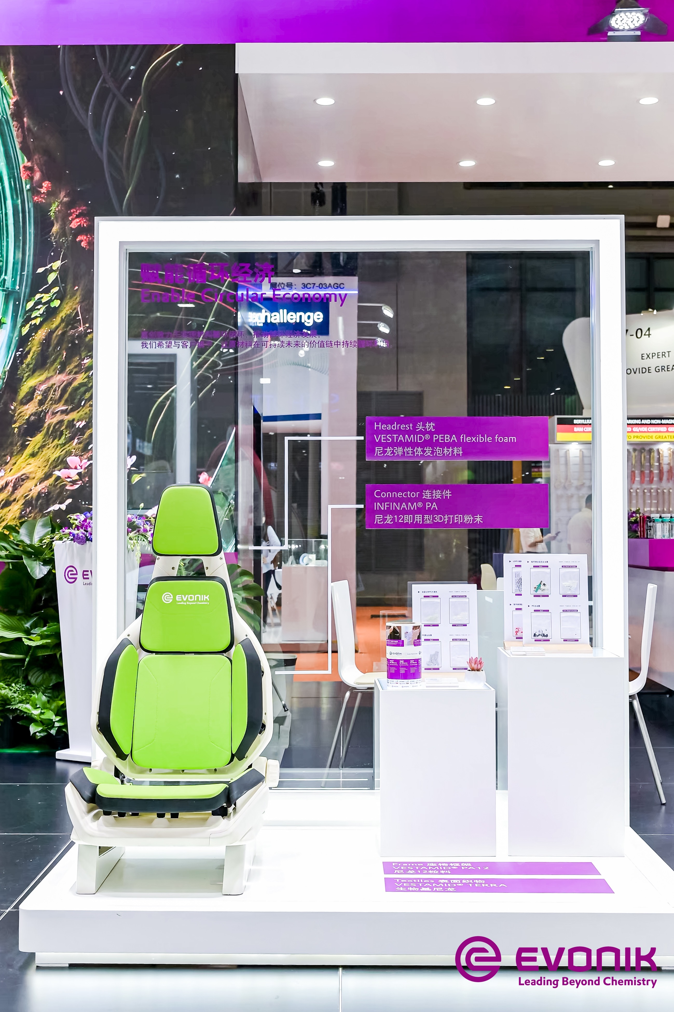 此外,赢创还展示了多项面向个人护理、生命科学领域与未来出行的创新成果,凸显其“超越化学边界”的跨界创新能力。如ISOLAN® DisperPlus 全新一代乳化剂100%源自可再生资源,助力彩妆与防晒产品实现天然性与功能性;临床级非动物源重组胶原蛋白平台Vecollan®,助力客户开发安全性更高、性能更佳的医疗器械;还有多款应用于聚氨酯及海绵制品的表面活性剂及催化剂产品,确保优异性能的同时降低碳足迹。