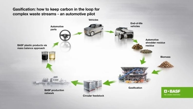 巴斯夫与奥地利BEST公司于2025年年中合作开展的气化试点项目,聚焦于汽车破碎残余物的回收利用,这类残余物成分复杂,涵盖塑料、泡沫、涂料及薄膜等,项目团队将其与生物质混合,共同作为回收处理的原料。