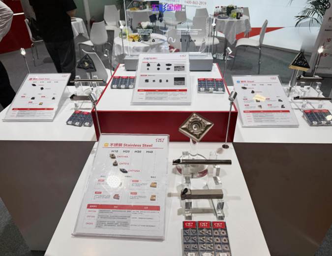 数控刀片方面,长鹰重点推广“五彩金刚”系列,包括CH3005高硬车削牌号和新增的CH5005高硬铣削刀片。CH5005专为HRC55-62热处理后精加工设计,采用纳米晶硬质合金基体和正前角设计,结合PVD Al₂O₃复合涂层工艺,实现了高硬材料的批量稳定加工。黄博士举例说,这些产品在汽车零部件制造、模具行业等领域已得到验证,能高效解决淬火钢、高镍合金等难加工材料的切削难题。