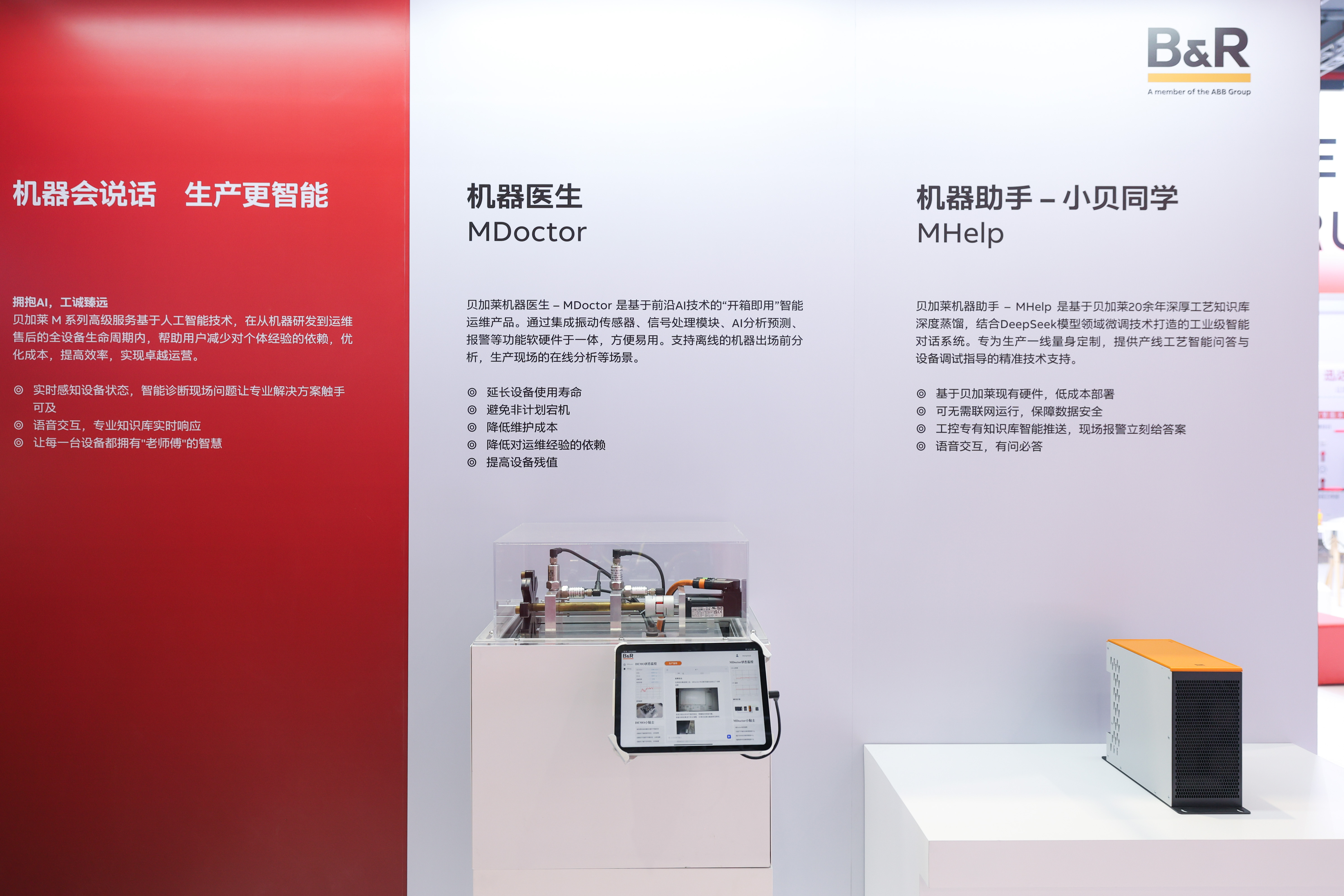 “这次贝加莱主要展出了基于AI数据建模的新品——MHelp和MDoctor,’M’代表 Machine(机器),贝加莱在ABB集团中属于机械自动化业务单元,因此我们更加聚焦于机械自动化领域。”李昕向我们先介绍起了此次的展出亮点,他同时透露,“M系列”包括MHelp、MDoctor,并计划于明年发布另一款M产品——都将秉承“以机械为核心”的设计理念,由贝加莱中国研发与工程团队完全自主地进行本土化打造。