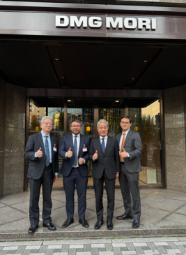 进入更高层次的全球战略合作(从左到右):Koichi Nosaka(Haimer Japan K.K. 翰默日本公司总裁)、Andreas Haimer(HAIMER翰默集团总裁)、Masahiko Mori博士(DMG MORI 公司总裁)和Kentaro Blumen-stenegel(DMQP执行官兼DMG MORI-Techinium总裁)