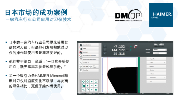 Haimer Japan K.K. 翰默日本公司总裁Koichi Nosaka总结了双方在日本和全球的合作伙伴关系的新水平,指出了经过验证的HAIMER翰默解决方案在车间提高工艺可靠性和生产率方面的优势,这在最近的日本客户成功案例中得到了体现: