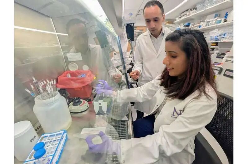 图:研究作者 Abdel-Mohsen 和 Pratima Saini 在芝加哥西北大学范伯格医学院 Abdel-Mohsen 的实验室工作