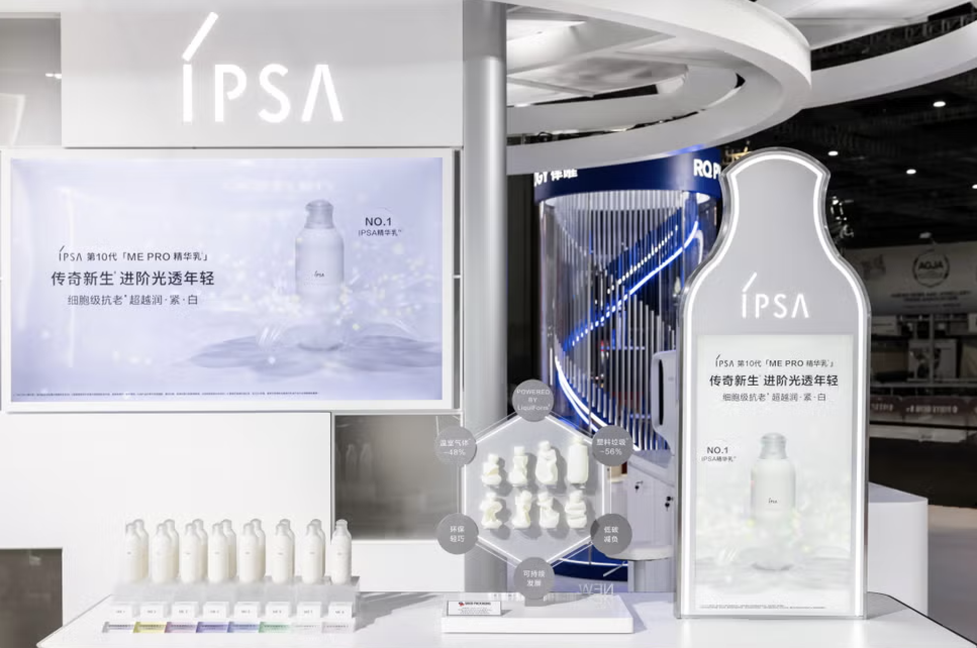 资生堂 IPSA 茵芙莎推出的第 10 代 ME PRO 精华乳采用 LiquiForm 技术,实现瓶体制造与液体灌装一体化工艺,塑料使用减少 56%、碳排放降低 48%。Clé de Peau Beauté 钻光护肤系列采用玻璃瓶身与环保替换装设计。