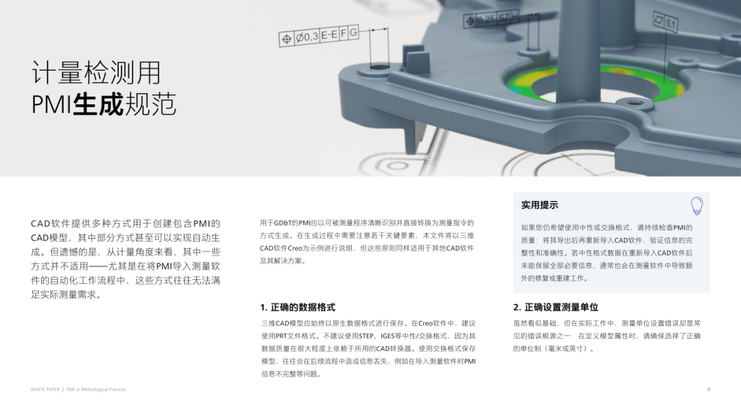 别担心,蔡司为你准备了两份实用白皮书——《几何尺寸和公差(GD&T)》《计量实践中的PMI》,为您系统梳理国际主流的GD&T/PMI标准与最佳实践,助力企业实现从设计到制造、检测的全流程数字化升级。