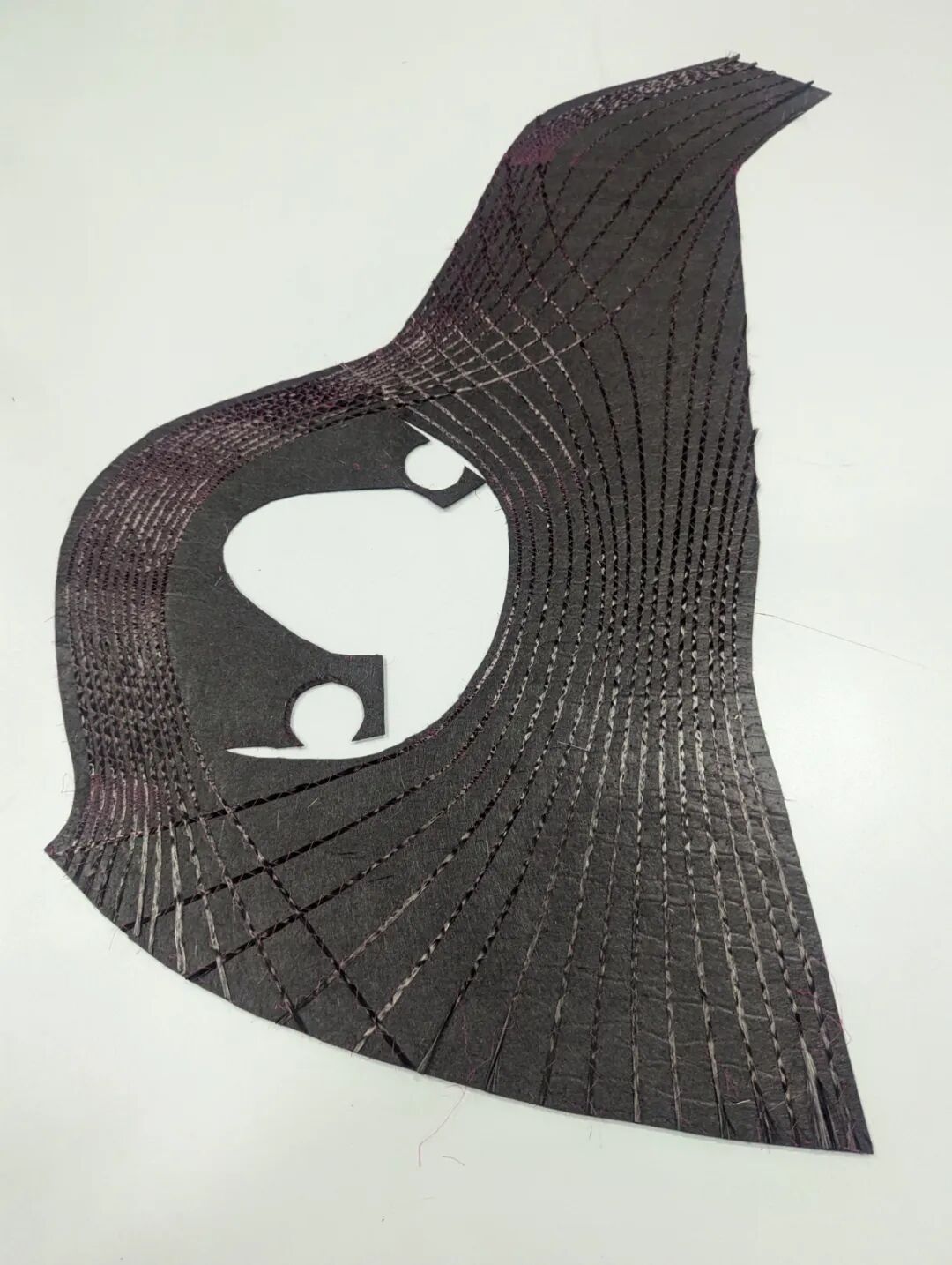 使用 TFP 工艺选择性地沿着最大负载路径放置连续丝束,将纤维缝合到 James Cropper rCF 无纺布基材上。