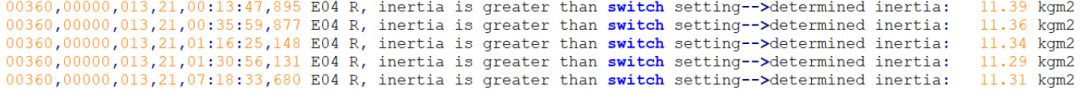 实际的计算的转动惯量为11kgm2,应当为高转动惯量情况,钥匙应拨到1档,实际情况是在0档,故报错。