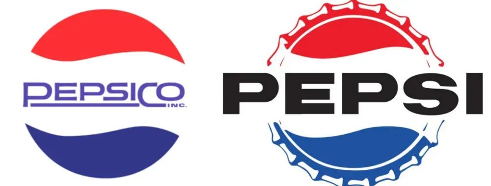 1965年,百事可乐公司刚刚与菲多利公司合并,当时百事公司最出名的品牌是百事可乐和乐事薯片[1],百事公司logo是百事可乐logo的“微调版”,借鉴了其标志性的红白蓝三色“地球图案”(Pepsi Globe),同时文字从“Pepsi”变成了公司名字“PepsiCo”。