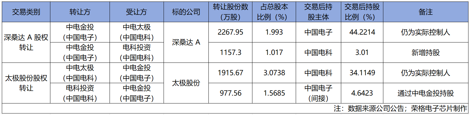 上述交易完成后,中国电子合计持有深桑达A的股份比例由47.2314%降为44.2214%,仍为公司实际控制人;中国电科合计持有的深桑达A股份比例为3.01%。
