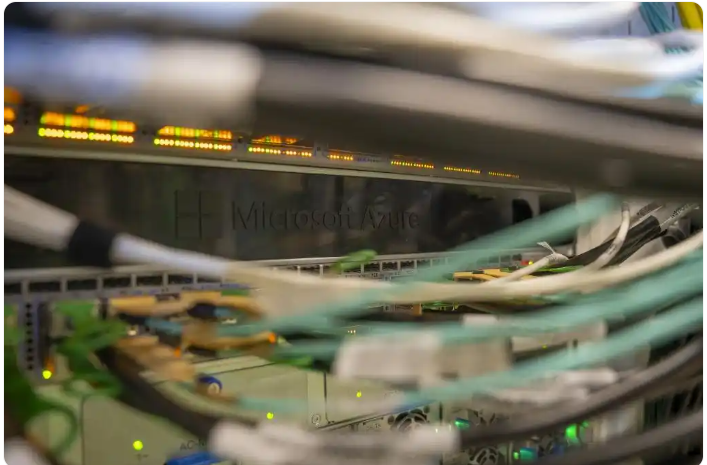 位于亚特兰大费尔沃特园区的所有GPU之间通过高速、高吞吐量的网络共享信息。图片由微软提供。