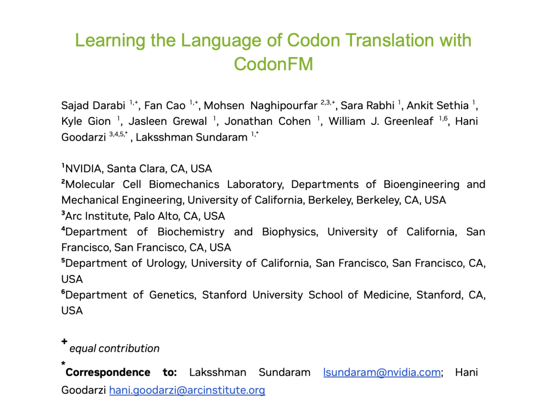 在技术细节方面,由英伟达、Arc Institute、加州大学伯克利分校、加州大学旧金山分校、斯坦福大学的研究人员共同完成的 CodonFM 的学术论文提供了模型设计和性能评估的详细信息。