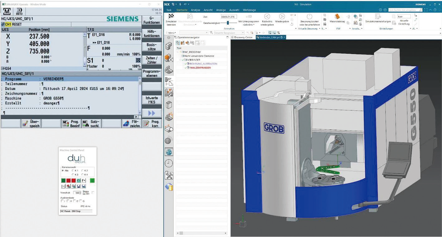 为实现数控程序编制与试运行流程能够与主要生产时间并行推进,d.u.h.集团的数字化专家团队创建了机床的完整数字孪生