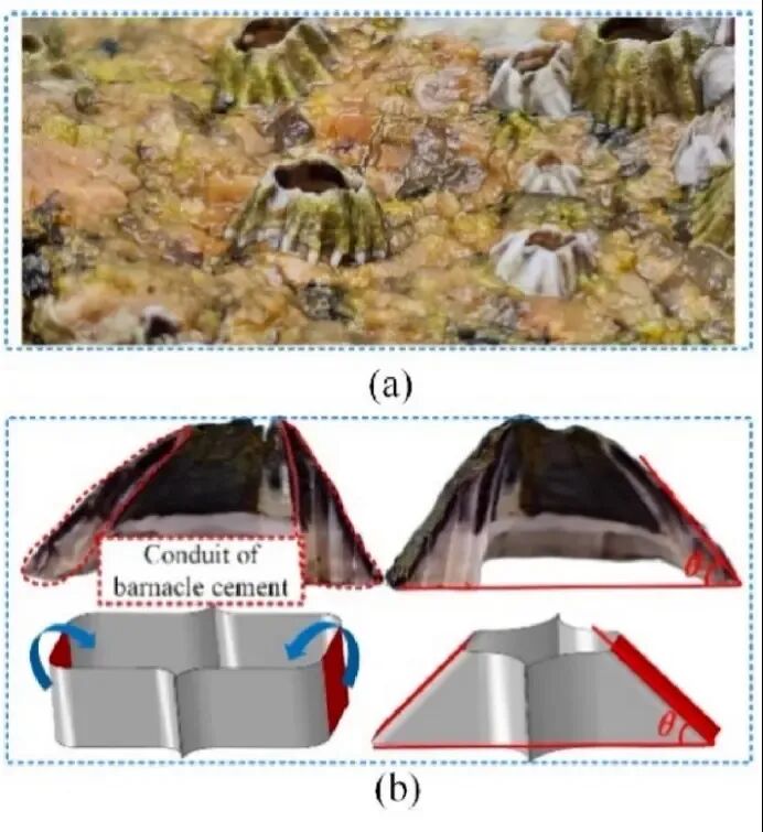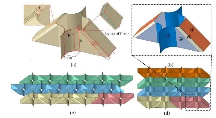 为解决航空航天中材料轻量化的难题,研究团队把目光投向了海洋中的藤壶。这种看似不起眼的小生物,将自己牢牢“粘”在礁石或船底上,即便在巨浪冲击下也纹丝不动。其秘密就在于:倾斜的侧壁结构能更均匀地分散外力,将剪切力转化为侧壁的拉压力。受此启发,团队设计出一种“金字塔蜂窝”结构:将传统蜂窝的垂直侧壁改为倾斜侧壁,就像把一个个小金字塔紧密排列。这种设计能让内部的碳纤维方向“按需调整”——当剪切力作用时,倾斜的侧壁会同时承受拉力和压力,充分发挥碳纤维“抗拉和抗压强度高”的优势,就像斜拉桥的钢索一样,通过倾斜角度分散载荷。