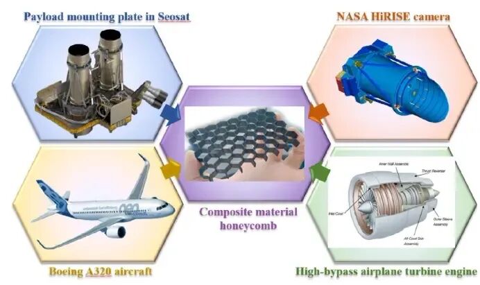这种“轻而强”的特性,让新型蜂窝在航空航天领域展现出巨大应用潜力。航天器部件卫星的天线反射器、太阳能电池板需要在太空中保持高精度形状,碳纤维材料的高热稳定性能有效抵抗太空温差引起的变形;飞机结构用于机翼蒙皮、机舱地板,可在减重的同时提升抗气流剪切能力,降低油耗;工业化生产无需复杂模具,通过调整设计图纸,及原材料壁厚(最薄仅0.03mm),就能灵活调控材料性能,为大规模工业化生产奠定了基础。