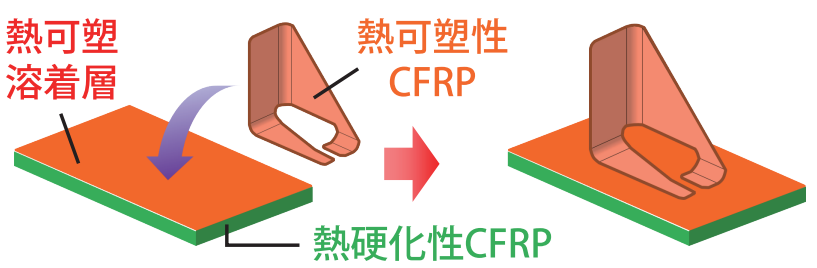东丽公司开发了名为“热熔焊接技术”的革新工艺,它是一种通过利用热塑性熔接层将热固化性CFRP牢固连接的热熔焊接技术。通过这种技术,即使是通常难以熔接的热固化性CFRP,也能像热塑性材料一样快速、高强度地焊接在一起。