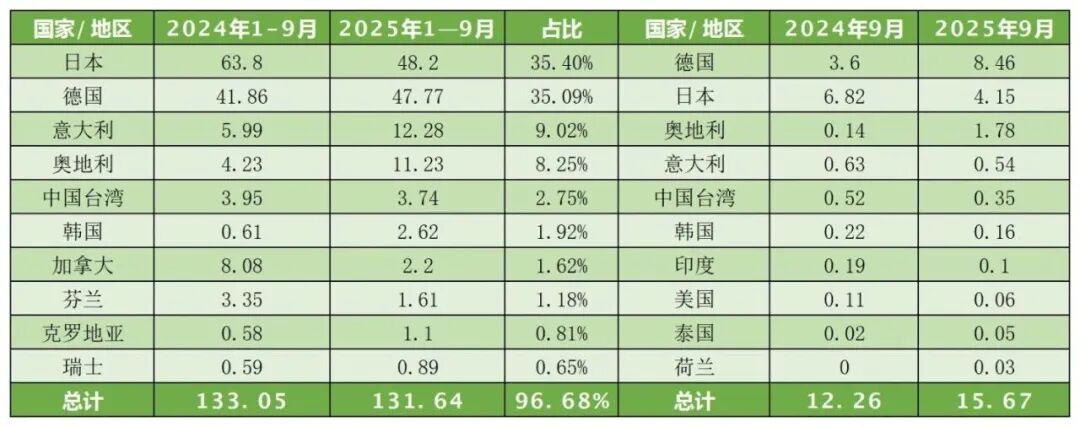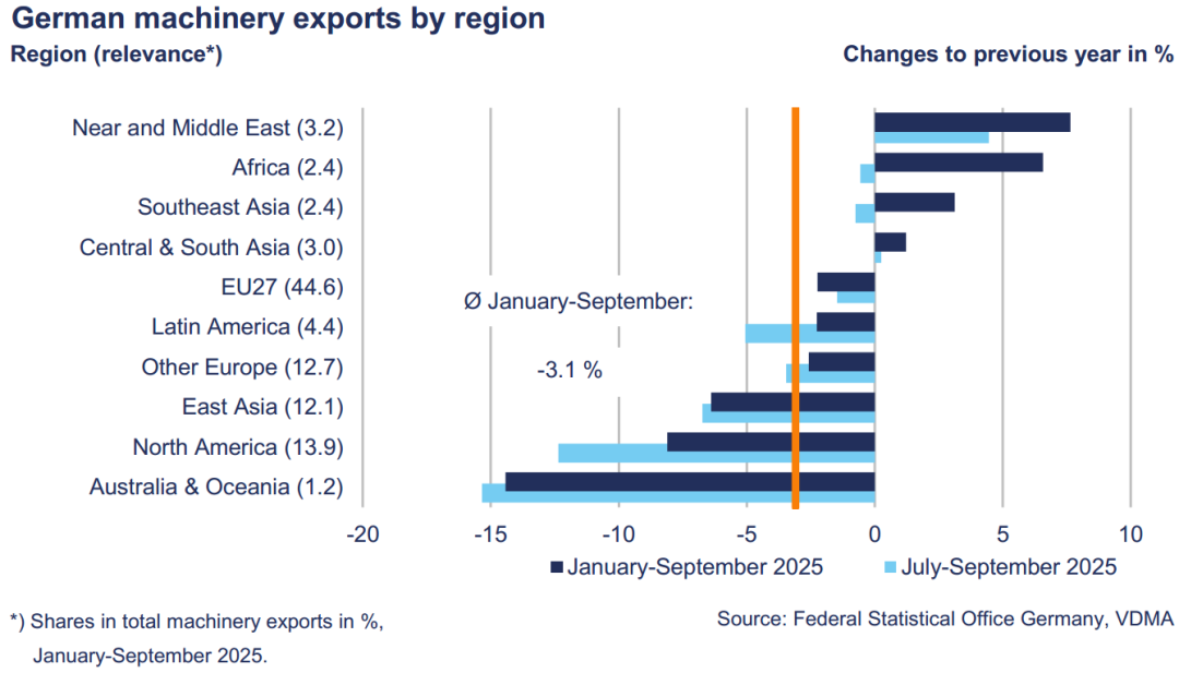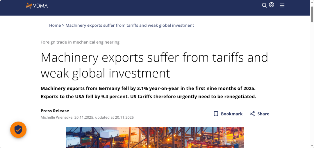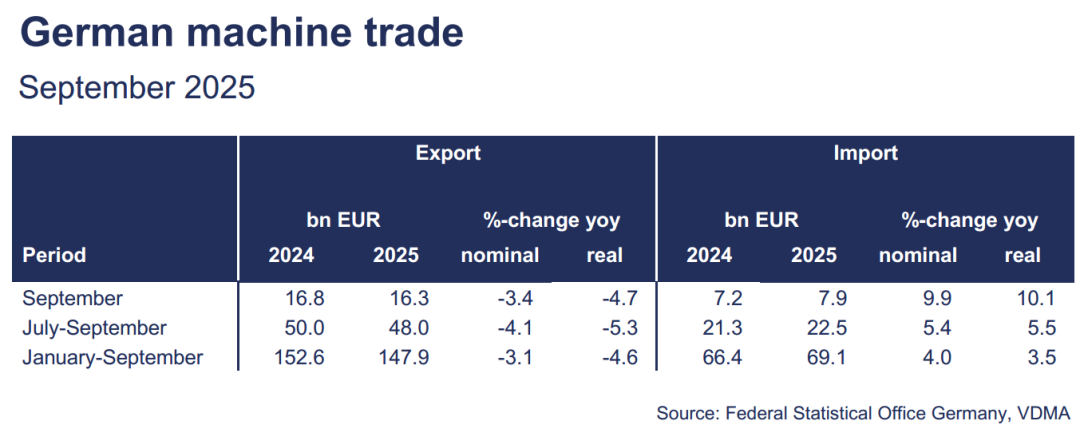 受关税影响,2025年前三个季度,德国机械出口同比下降3.1%
