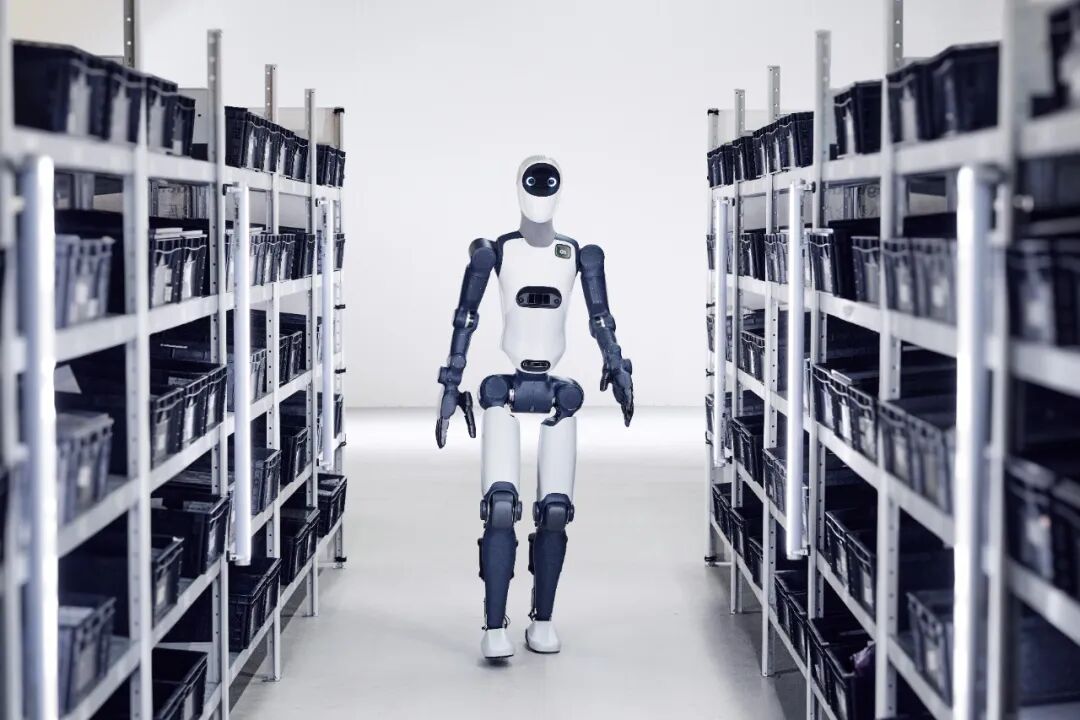 在人机交互层面,该机器人创新设计了“定向环形眼"(Directional eye rings)响应系统,通过灯光闪烁确认指令接收,搭配背部感应指示灯与后视感知功能,让人能够直观掌握机器人运行状态,构建起安全可信的协同环境。更值得关注的是其分层AI架构,融合了分步规划的 “慢思考”、动态响应的 “快思考” 以及高频微调的精细操控层,模仿人类本能反应与复杂决策机制,可自适应调整操作力度与姿态,避免物体滑落或损坏,这一技术突破使其在真实工业场景中具备更强的环境适应性。