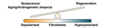研究还发现,正常小鼠毛囊周期的成纤维细胞膜电位本身就存在波动,生长期更偏向超极化,而休止期更偏向去极化。