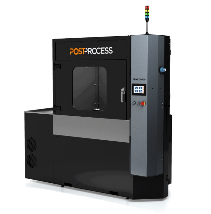 在本届展会上,PostProcess Technologies最新推出DEMI X 5000——一款提升安全性、环保性与生产效能的下一代自动化树脂去除解决方案。该系统专为满足大规模SLA 3D打印件高效处理需求而设计,据称可在十分钟内完成处理流程。新型DEMI X 5000采用公司专属的不可燃化学制剂进行树脂去除,相比多数异丙醇清洗工艺可降低75%的废料处理成本。