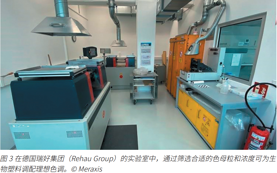 为避免此类问题,将生物聚合物储存在阴凉干燥处至关重要。在加工前进行针对性预干燥处理通常有助于将残留水分控制在特定范围内。根据生物聚合物的不同特征,采用特种包装或在保护性气氛中储存也是可行的方案,尤其是材料需长期保持性能稳定和可加工性时。要使生物聚合物在实践中展现卓越性能,关键在于材料、加工工艺、储存和应用场景的完美协同。因此,像Meraxis这样的分销商为加工企业提供全方位支持:从材料选型、配方研发直至批量生产。通过与加工商和供应商紧密协作,分销商专家团队共同开发了兼具技术先进性与经济可行性的解决方案。此外,他们还协助客户实现特定颜色色调的调配(图3)。