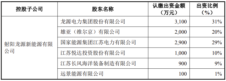 龙源电力表示,本次设立控股子公司,旨在充分利用和调动国能江苏电力以及各参股方在当地的资源优势,从而进一步发挥本公司在海上风电领域的专业特长和技术优势,实现强强联合,共同开发建设和运营江苏如东H16# 15万千瓦风电项目、大丰H20# 40万千瓦海上风电项目、射阳海上南区H7# 75万千瓦风电项目。
