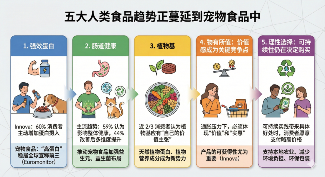Innova Market Insights 于近期发布《2026 年食品饮料十大趋势》,可以预见,今年多个热门趋势将进一步渗透到宠物食品领域,加速其配方与原料结构的变化。