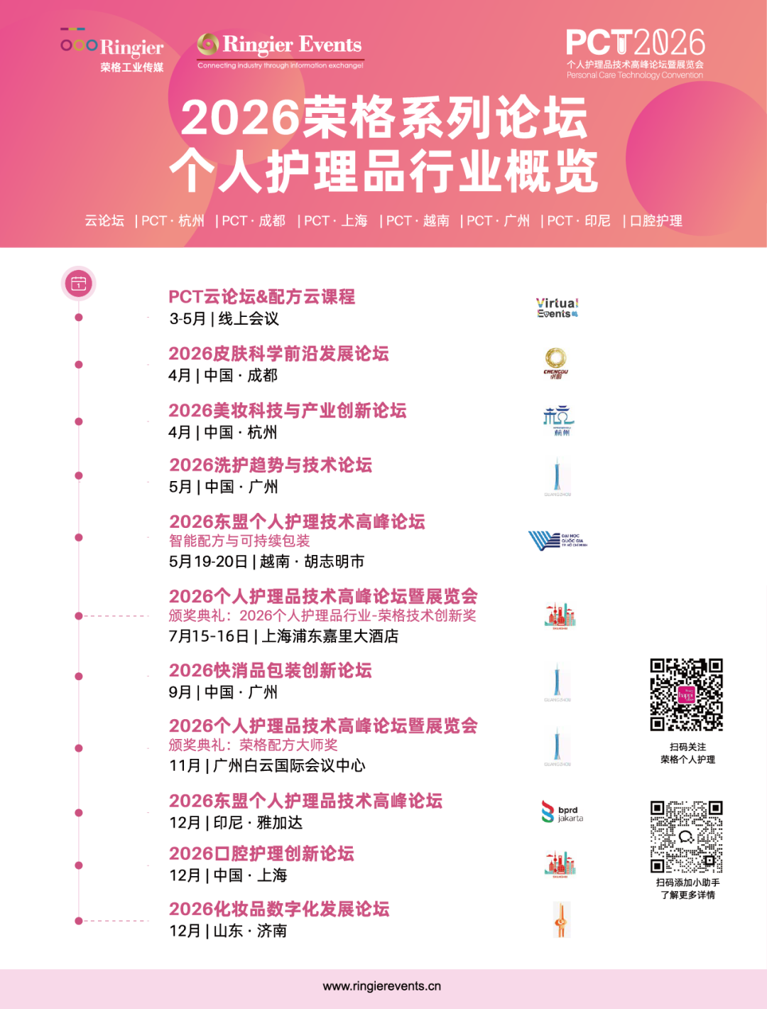 PCT2025·广州站虽已圆满收官,但化妆品行业的创新引擎从未熄火。这个十二月,荣格PCT系列会议再度启航,聚焦美妆出海、口腔护理、化妆品数字化、印尼个护等热门赛道,为行业注入持续动能。