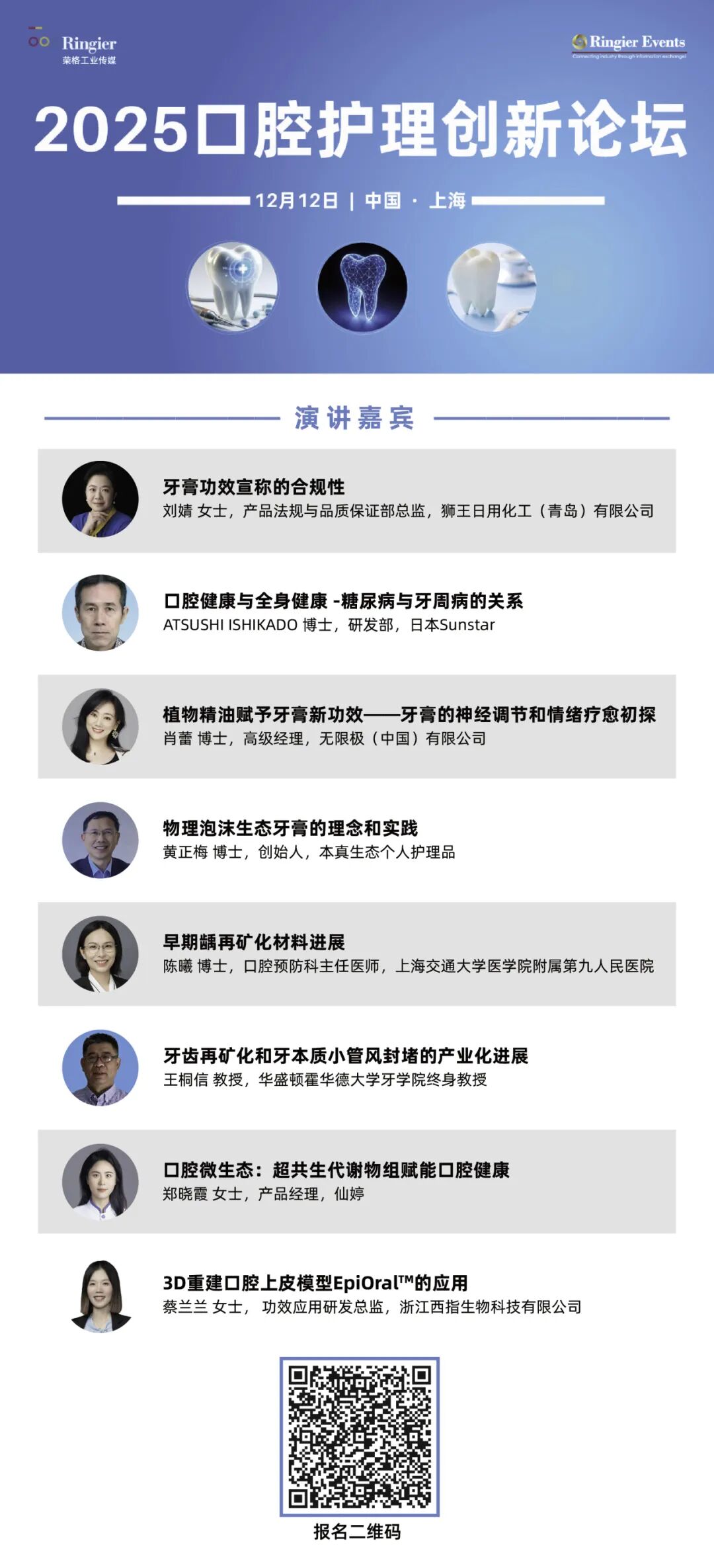 12月12日口腔护理创新论坛聚焦行业法规,创新原料,疾病预防等维度,助推口腔健康产业升级。