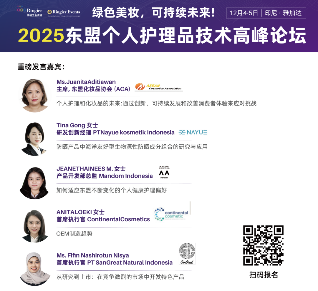 12月4日东盟个人护理品技术高峰论坛将针对东盟个护行业热点展开讨论,深入解析东盟市场个护领域的前沿趋势与商业机遇。