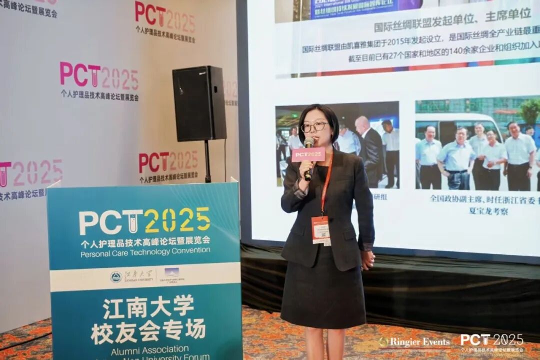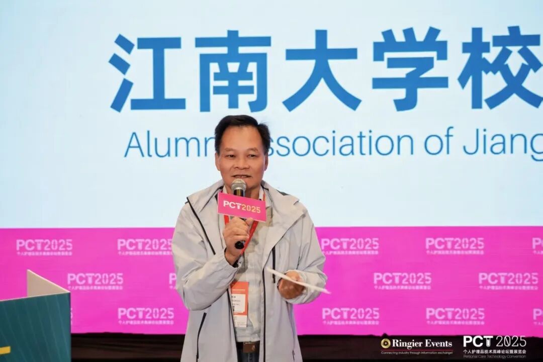 「江南大学校友会专场」在广东省药品检验所前化妆品实验室负责人肖树雄先生的主持下,多位来自江南大学等科研及企业专家分享了技术前沿。江南大学化妆品创新中心主任杨成教授围绕《赋能活性成分:化妆品包载技术核心体系与前沿突破》介绍了该领域的关键工程路线。凯喜雅集团鲜可生物与广州市馨妍贸易有限公司执行董事兼技术负责人卢玲巧以《丝心蛋白的创新应用》带来天然蛋白活性的创新视角。梵霖化学科技(广州)有限公司董事长兼首席科学家但卫华以《天然活性胶原与皮肤抗衰老》聚焦胶原类成分的科学演进。广州海石精细化工有限公司总经理陈东海分享了《智合神经酰胺:品质对标国际,溶透革新未来》,展示屏障修复方案的升级方向。江南大学化妆品学院副院长王靖教授以《护发原料创新与功效宣称》解析了护发赛道的技术风向。江苏瑞霆生物科技有限公司市场经理赵野女士围绕《葡糖基芦丁:基于生物转化技术的高效光护解决方案》揭示这一次世代表活性成分的应用潜力。广州华狮化妆品科技有限公司研发部分析组主管李磊以《真实世界防晒产品的评价方法及功效测试:从原理到实践》为防晒评价体系提供了行业实践路径。