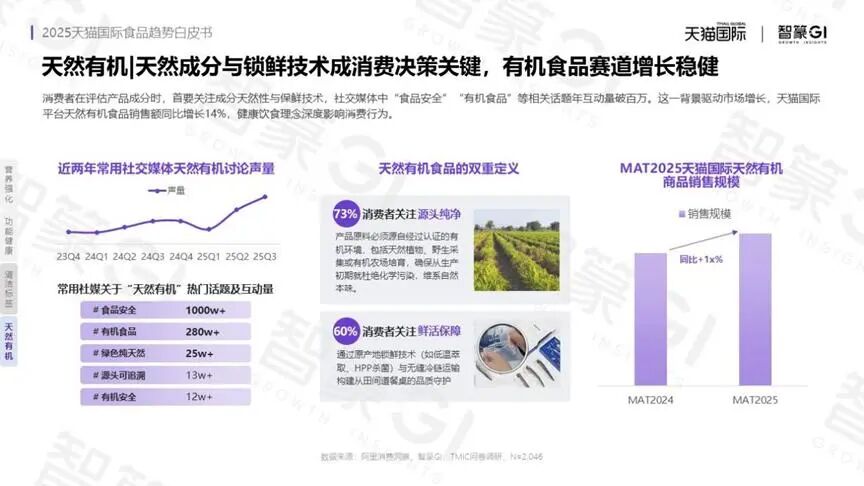 对于“天然有机”的理解,消费者已不再停留于一个认证标签。87%的消费者将“商品的天然成分与保鲜工艺”视为决策关键。他们既关注原料的源头纯净——是否来自无污染的有机环境,也极度依赖后端技术保障——如何通过HPP超高压杀菌、低温灌装、全程冷链物流等锁鲜技术,将“天然”的承诺从产地真实地交付到餐桌。
