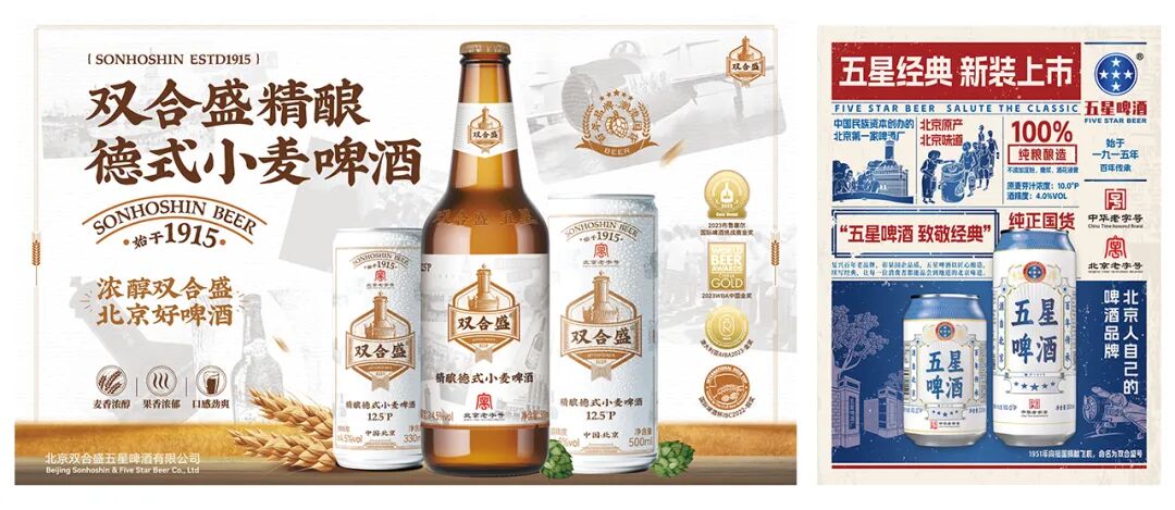双合盛五星啤酒的前身为1915年创立的“北京双合盛汽水厂”,是中国首座民族资本啤酒厂,当之无愧的“百年行业见证者”。2024年2月,它更荣登商务部“中华老字号”名单,老字号的底蕴与活力,在此刻愈发鲜明。