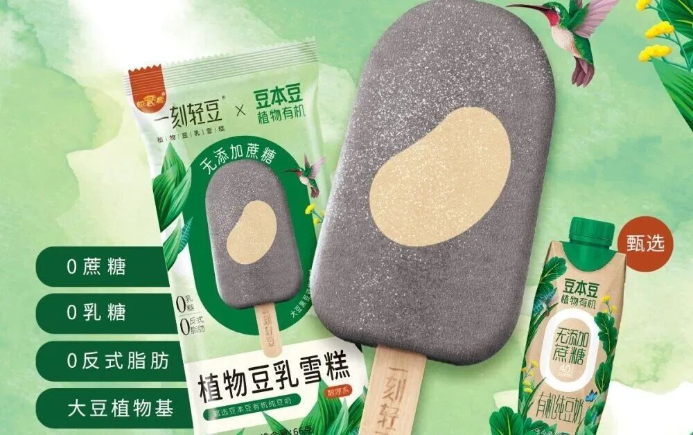传统冰淇淋企业的转型与新兴品牌的崛起,进一步丰富了市场生态。红宝石冰淇淋集团打造的“一刻轻豆”植物豆乳雪糕,秉持“健康轻负担”理念,与豆本豆联名推出的0蔗糖产品,以有机纯豆奶为原料,实现0乳糖、0反式脂肪酸的健康承诺,凭借浓郁豆香与顺滑口感收获大批消费者青睐。