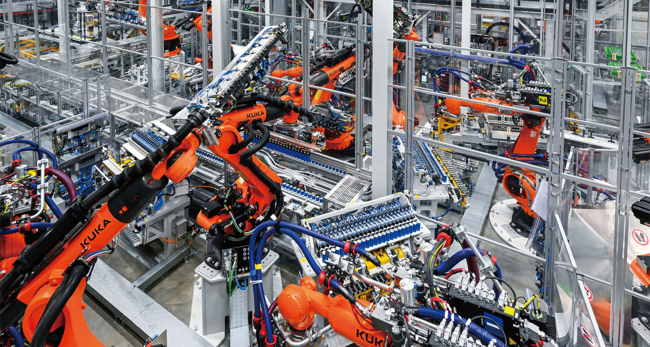 智能运输机器人则独立运送更小的部件,结合AI模块优化路径规划,具备避障和路径优化能力,能在几毫秒内识别障碍物并计算备选路线。该过程采用“手指结构”设计,允许80%的零件直接交付到装配线上的适当位置。云端交通控制系统管理近50台自动牵引列车和140多个智能运输机器人,每日交付约10000次高压电池和零件。