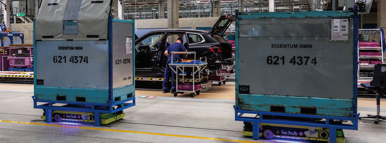 图3.两台智能运输机器人将集装箱运送到生产线旁