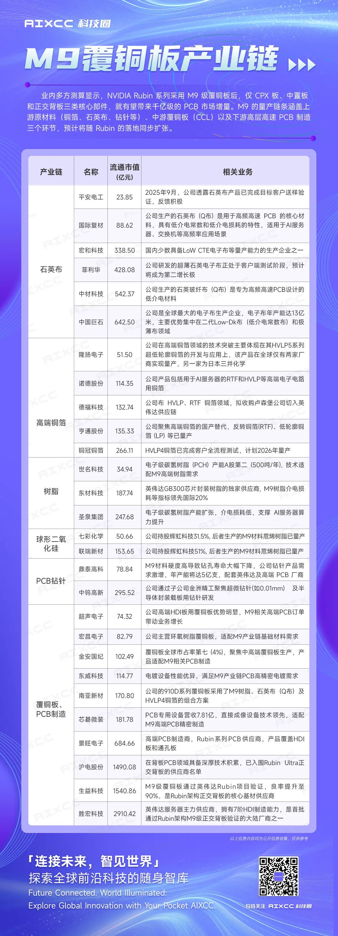 随着 Rubin 对互连带宽的要求提升,M9 材料的大规模使用成为确定性趋势;微孔比例上升成为结构性趋势。