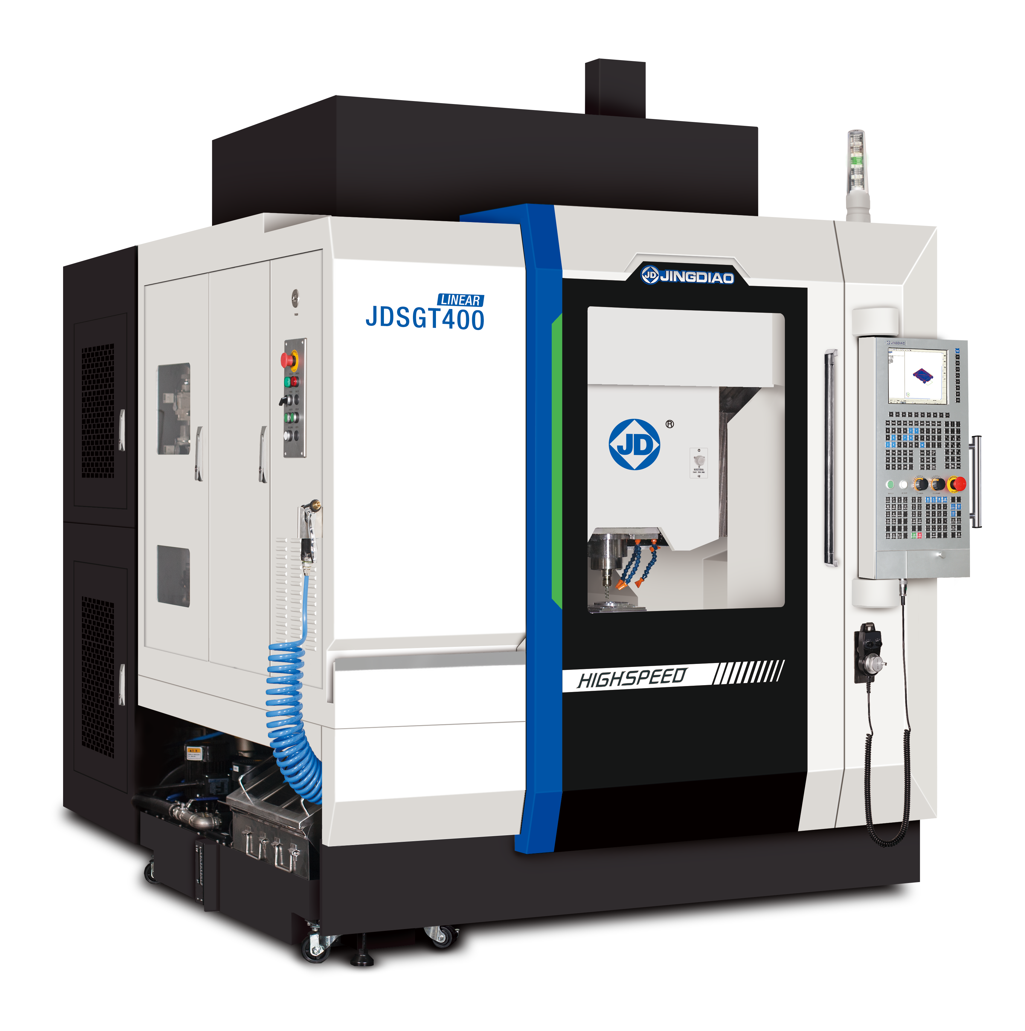 另一款机床是JDSGT400直线电机驱动的三轴高速加工中心,其突出亮点在于三轴均采用双直线电机驱动,重复定位精度达到0.8微米,能在100毫米范围内实现孔位精度小于1微米的高精密加工。这款设备融合了直驱、温度管控、自研JD60数控系统精密加工特色功能及高精度伺服驱动系统等多项核心技术,主要面向精密光学模具、半导体零件、高精密结构件等对尺寸与表面质量有严苛要求的领域,可实现“表面即是功能面”的卓越效果。