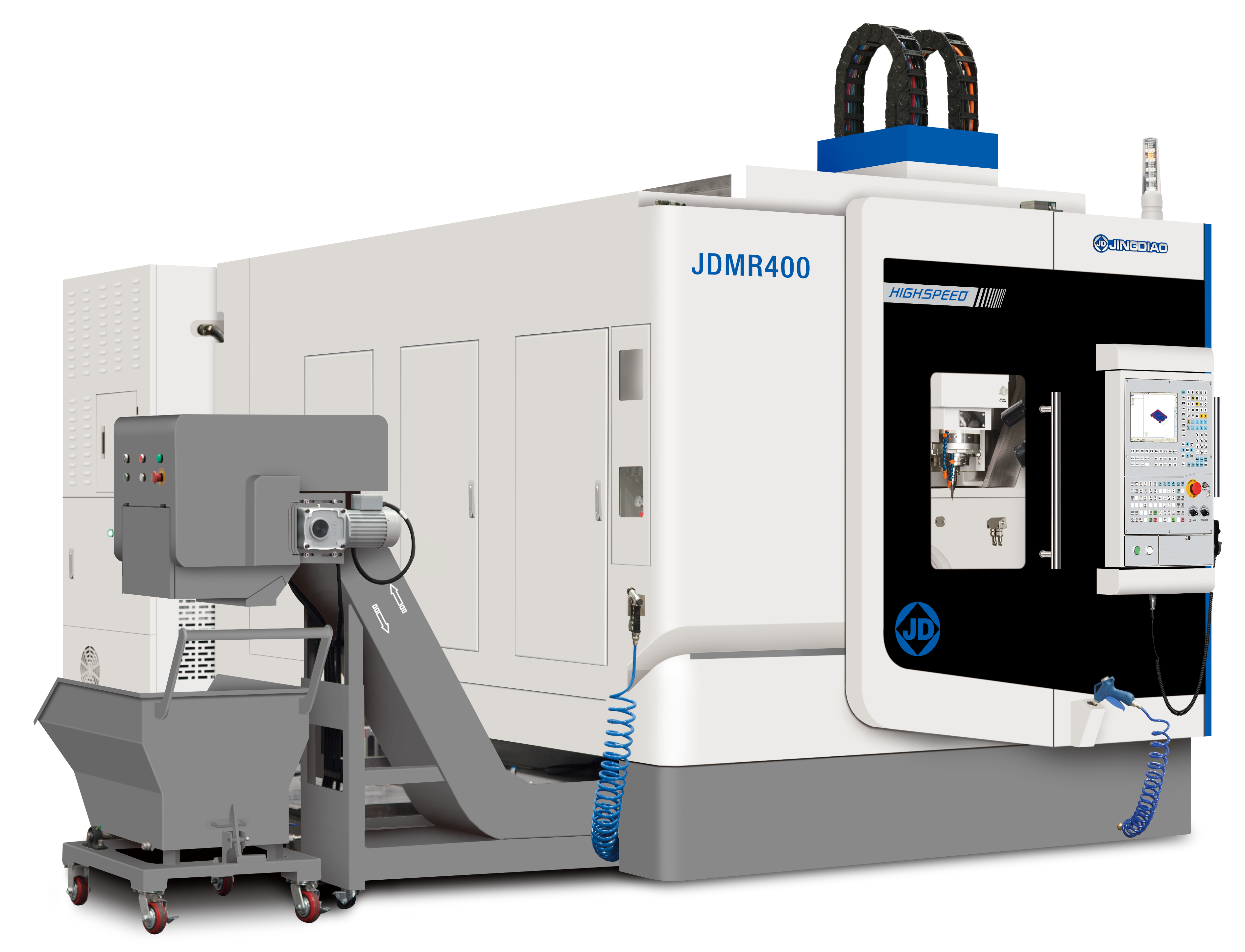 为完善五轴产品谱系而生的JDMR400立式五轴高速加工中心,则定位于中小型复杂零件的高效加工。它强化了设备的高效加工和重切削能力,并具备出色的工艺适应性。通过平台化、模块化设计,JDMR400可扩展为铣车复合加工中心,实现铣削、车削等多种工艺的复合加工,为客户提供了灵活的选型方案。其重切削、高刚性的核心设计理念,特别适用于航空航天领域钛合金、高温合金等难加工材料的结构件加工。