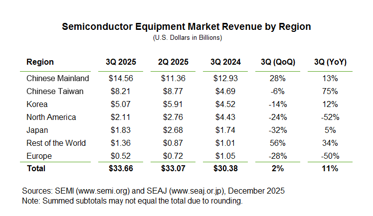 展望后续,随着全球半导体产业链加速升级,先进逻辑制程、HBM、AI 芯片等相关设备需求有望持续释放,区域市场竞争与合作格局将进一步优化。